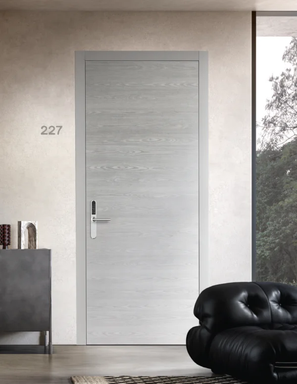 La collezione di porte interne Materia Hotel nasce per vestire gli spazi dell’ospitalità con un’estetica essenziale e una sensazione materica di calore e autenticità. Le superfici sono il punto di forza: texture visivamente ricche, dal tatto naturale, pensate per valorizzare ambienti che devono essere accoglienti, ma anche resistenti, pratici, durevoli.