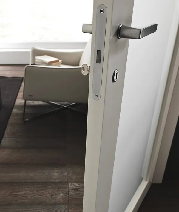 In una porta interna, la differenza si vede nei dettagli. Per questo GD Dorigo dedica la massima cura anche a ciò che spesso passa in secondo piano: i telai, le serrature e le cerniere. Elementi tecnici fondamentali che garantiscono prestazioni elevate, durata nel tempo e una perfetta integrazione estetica con l’anta.